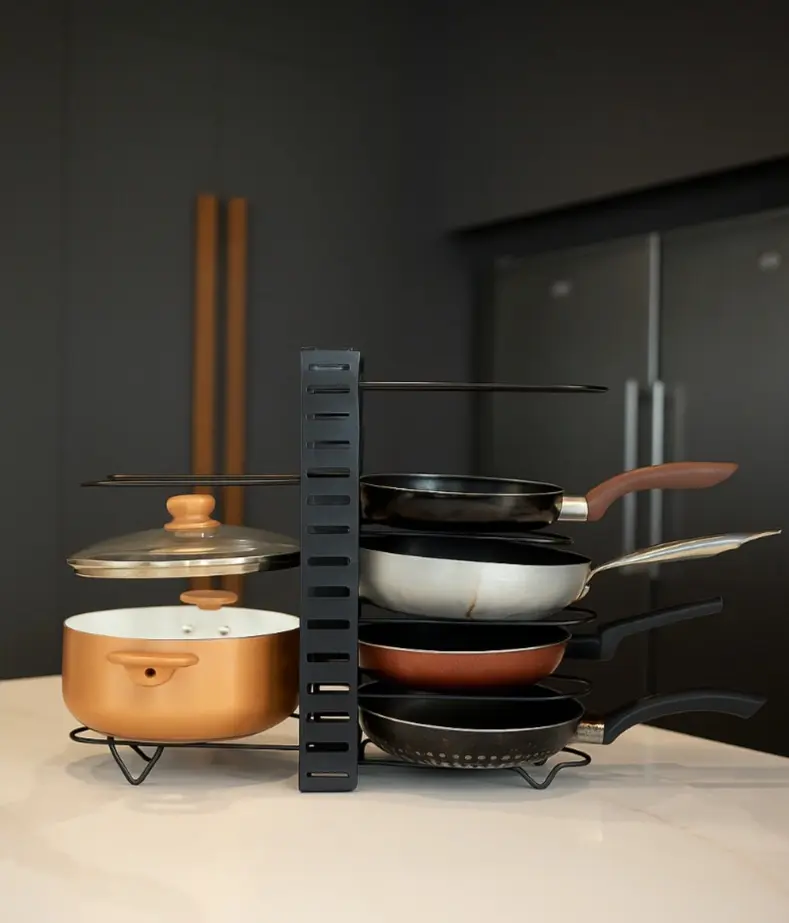 Rack Organizador de Ollas y Sartenes – 8 Niveles Regulables Antideslizante