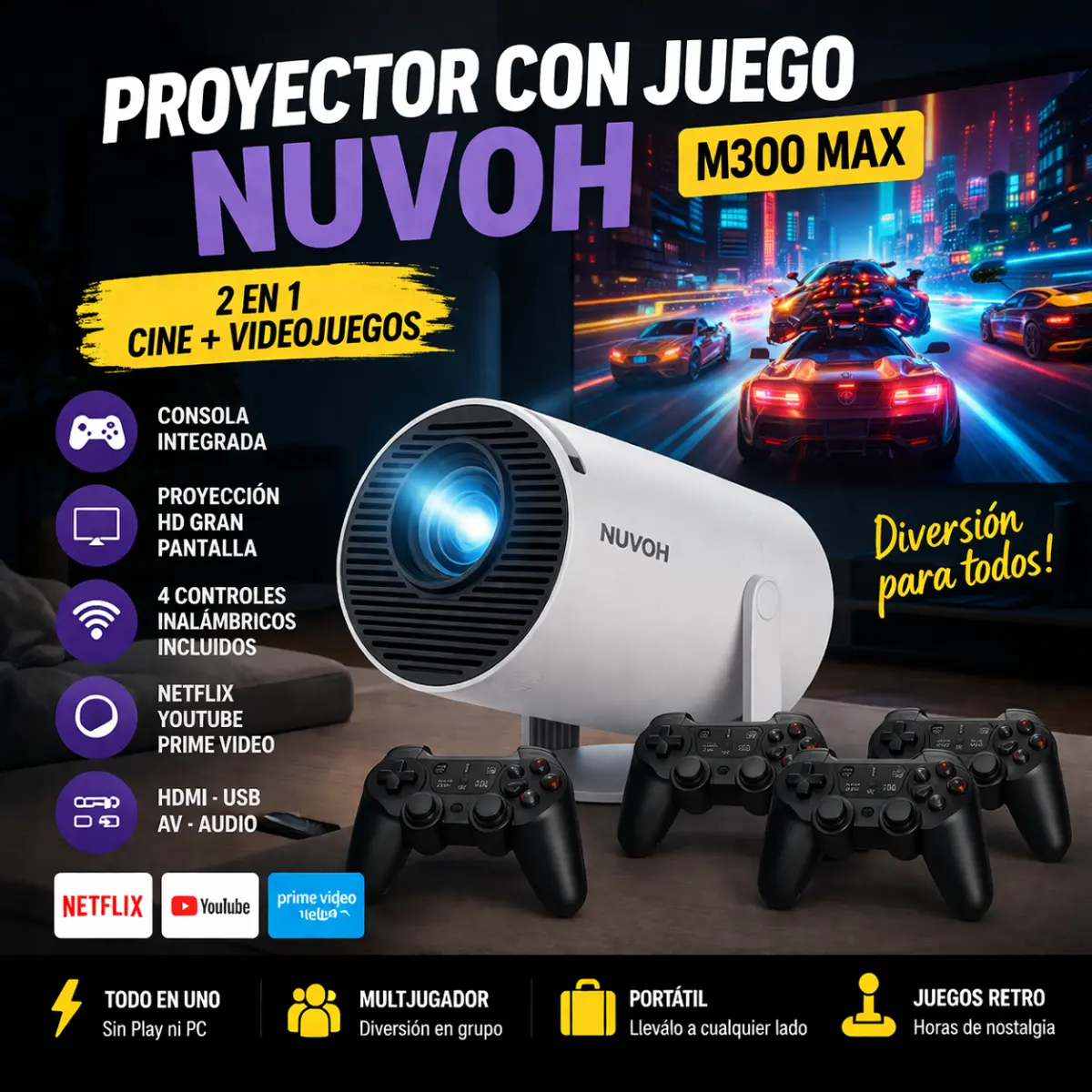 Proyector Gamer Nuvoh M300 Max con Consola Integrada 🎮📽️